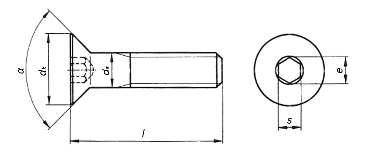 Socket Counter sunk Head Screw Dimensions